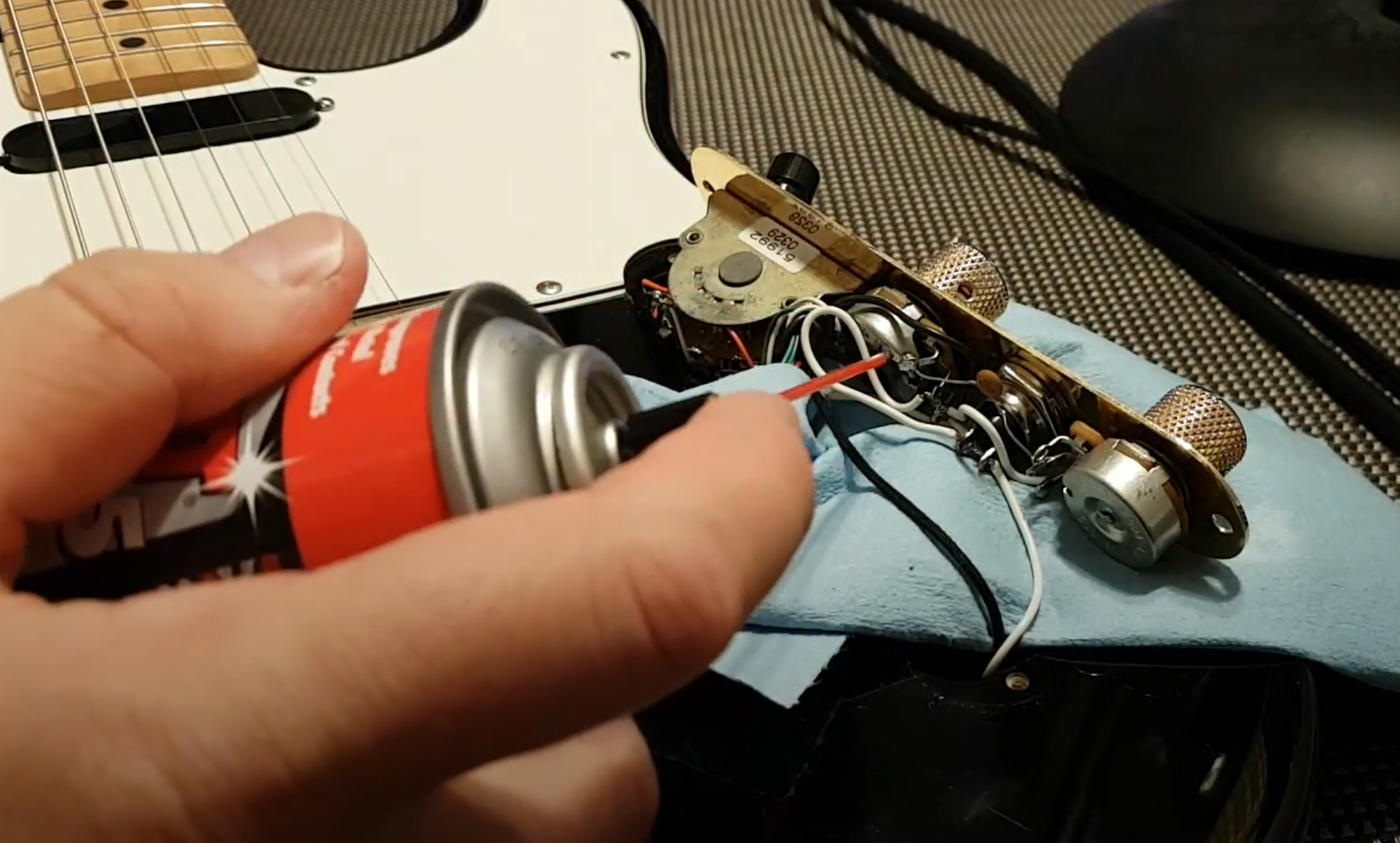 I mentioned there are a couple of things you can do when you experience scratchy pots. I’ve heard you can simply vigorously turn the control pot back and forth to try and clear debris. This hasn’t worked in my experience.