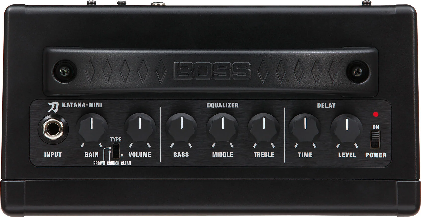 Last on my list is my personal favourite at the time of writing this article (my fav can change from time to time). The Boss Katana Mini is a mid sized mini amp that has something unique that the Vox and Blackstar don’t have. It has a 3 band EQ to control the bass, middle, and treble. This is a huge advantage over the other two amps, because I find it let’s you find tune your tone no matter what kind of guitar you are playing with. Here are the official specs and details for the Kat Mini: