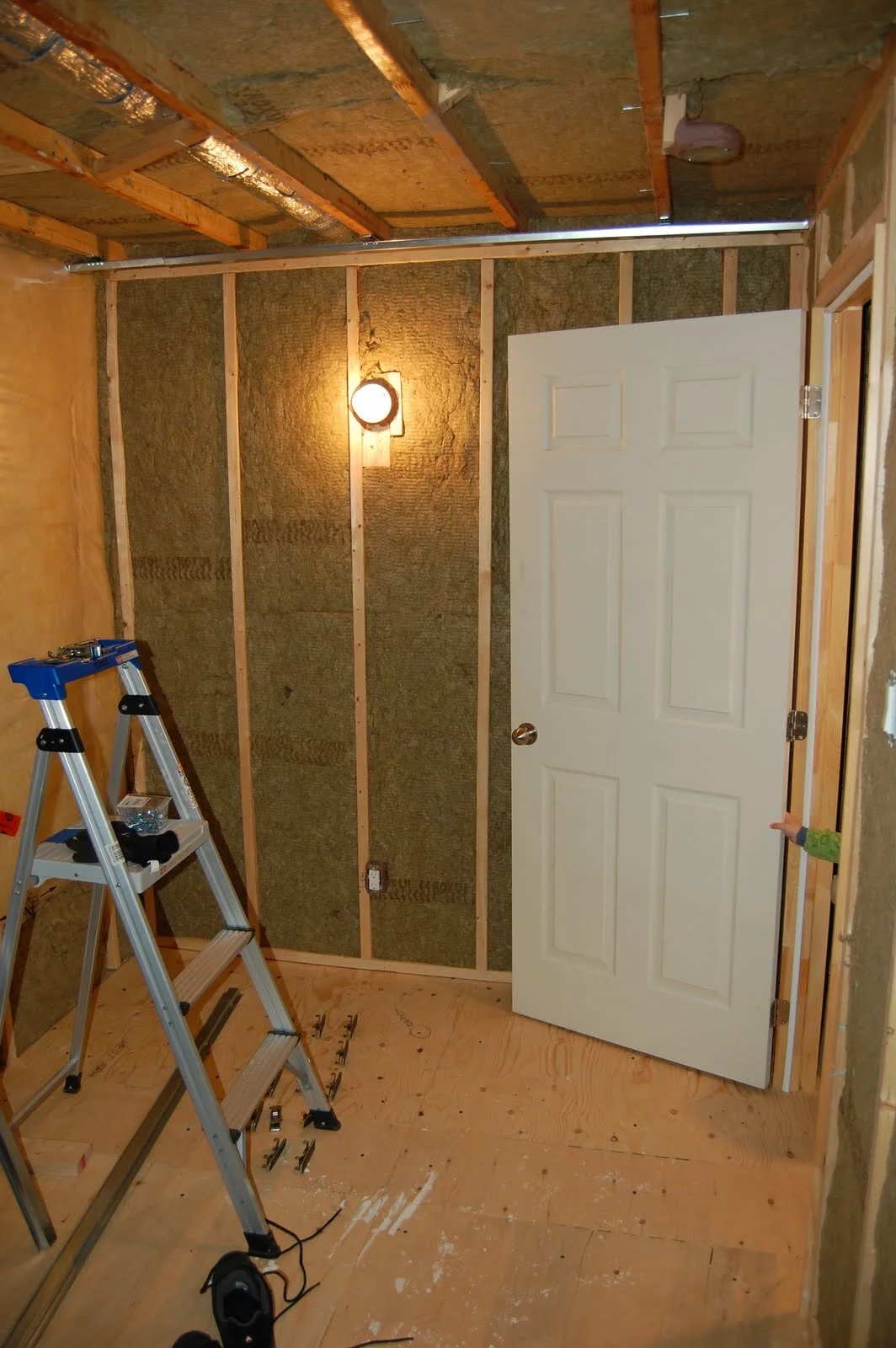 A lot of sound can be transmitted through a regular door. Most doors inside a home are hollow and don’t provide much help in preventing sound transmission. I chose to install a brand of solid core door called Safe ‘N Sound. This will greatly reduce the sound that is passing through, but it must also be used with a combination of well installed weather stripping. Just picture the materials that are used around the frame of an outside facing door. I used the same materials and it made a snug fit. The way to ensure your weatherstripping is properly installed, turn off the lights and use a flashlight to see if you can spot any light leaking through the door.